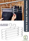 Pratik kullanım sunan 2 adet kristal gözlü pantolon ve etek askısı, şeffaf tasarımı ile kıyafetlerinizi kolayca asmanızı sağlar
