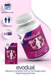 EVODUAL (Glikozamin, Kondroitin, MSM ve T İP II Kollajen İçeren TabletTakviye Edici Gıda) Glikozamin Sülfat : 1500 mg Kondroitin Sülfat : 400 mg Metilsülfonilmetan: 200 mg Kollajen Tip II: 40 mg KULLANIM ŞEKLİ: Tavsiye edilengünlük alım dozu: Sabah 1 akşam1 tablet tok karnına bir miktar su ile birlikte alınması tavsiye edilir. ; Uyarılar : 18yaş ve üzeri bireylerin kullanımı için uygundur. ; İlaçdeğildir Hastalıklarınönlenmesi veya tedavi edilmesi amacı ile kullanılamaz. ; Hamilelik ve emzirme dönemi ile hastalık veya ilaçkullanılması durumlarında doktorunuza danışın.;