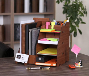 Evrak Rafı Ahşap Organizer Masa Üstü Düzenleyici Kahverengi - Image 1