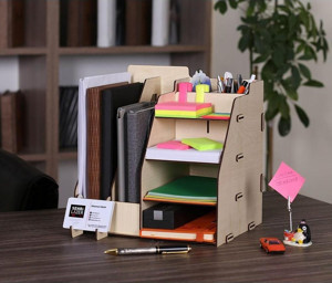 ByKurt Evrak Rafı Ahşap Organizer Masa Üstü Düzenleyici Krem