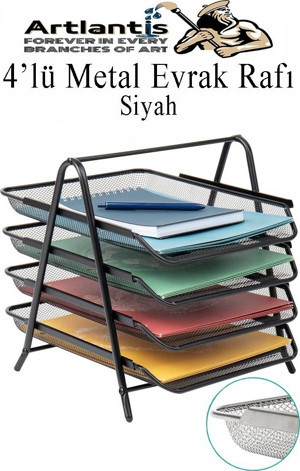 Artlantis Evrak Rafı Metal 4 lü 1 Paket Masa Üstü A4 Dosya Düzenleyici Kağıt Tepsisi Metal Fileli Dört Katlı Hareketli Perfore