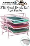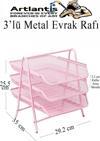 Artlantis Evrak Rafı Metal 3 lü Pembe 1 Paket Masaüstü A4 Dosya Düzenleyici Kağıt Tepsisi Metal Çelik Fileli Dört Katlı Hareketli