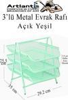 Artlantis Evrak Rafı Metal 3 lü Yeşil 1 Paket Masaüstü A4 Dosya Düzenleyici Kağıt Tepsisi Metal Çelik Fileli Üç Katlı Hareketli