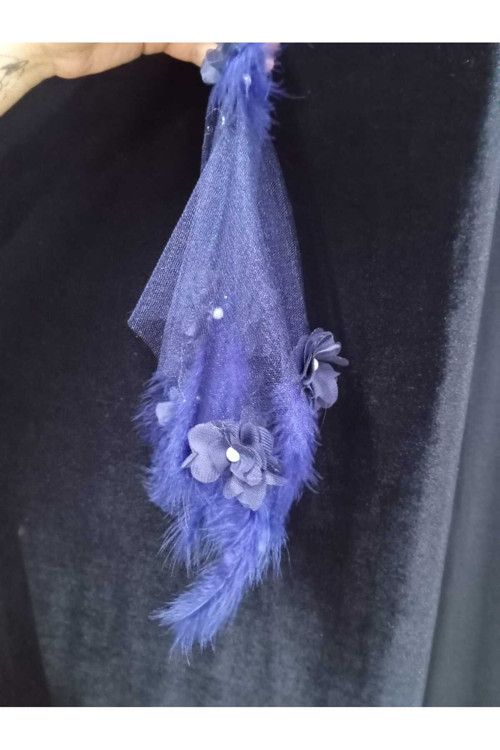Evsay Gelin Ve Damat İçin Tüylü Güllü Incili Lüx Halay Mendili