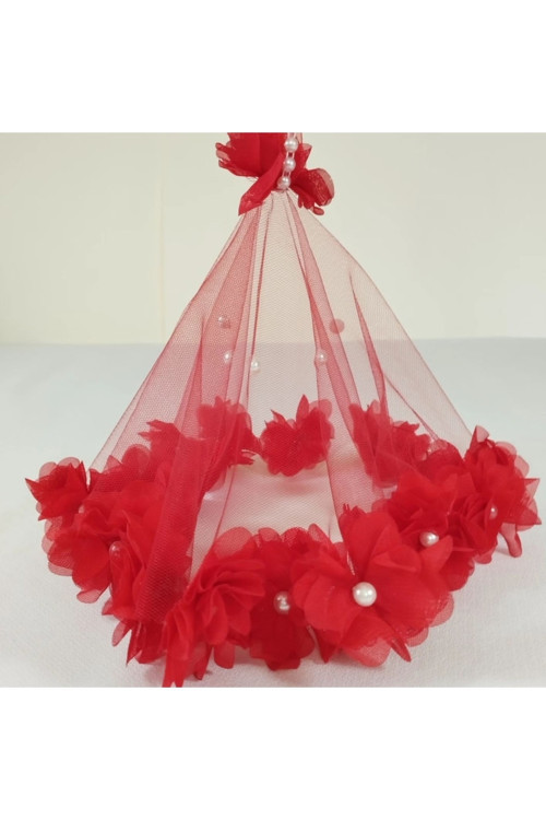 Evsay Gelin Veya Damat Mendili, Güllü Incili Lüx Halay Mendili Gelin Mendili 1 adet Kırmızı
