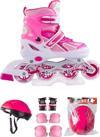 Pembe Çift Sıra Ayarlanabilir Alıştırma Pateni + Kask + Dizlik Seti