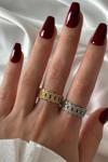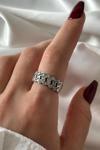 Leostone Exclusive Seri Ayarlanabilir Paslanmaz Kararmaz Taşlı Zincir Model Tasarım Kadın Çelik Yüzük