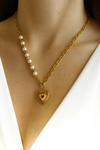 Leostone Exclusive Seri Kalp Uçlu İncili Kare Toplu Zincirli Model Kadın Çelik Kolye