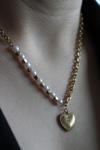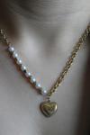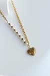 Exclusive Seri Kalp Uçlu İncili Kare Toplu Zincirli Model Kadın Çelik Kolye