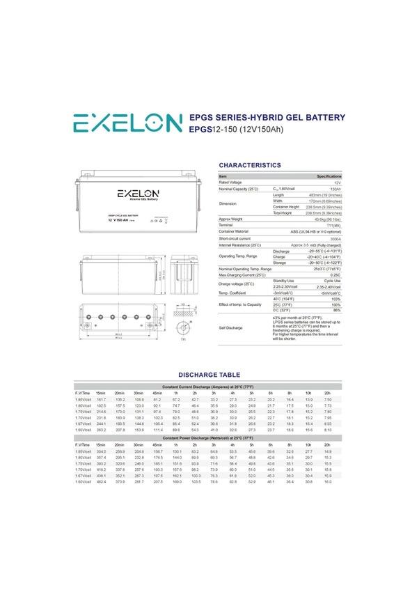 Exelon 12V 150AH Derin Deşarj Jel Akü | Yüksek Performanslı Enerji Depolama Çözümü