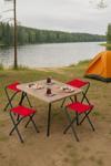 Exent 45X60 cm Kamp Sehpası + 4 Adet KIRMIZI Tabure Piknik, bahçe balkon sehpası Katlanır Sehpa-A-4K