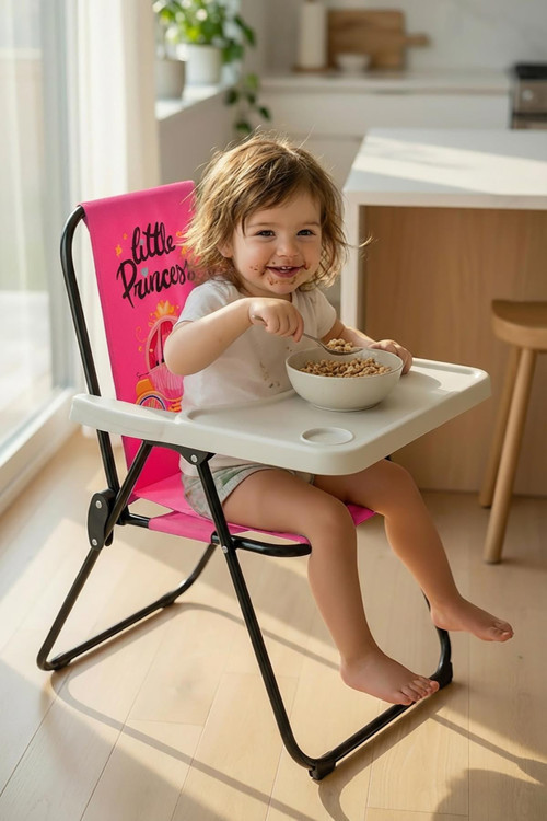 Kids 2–6 Yaş, Little Princes Katlanır Portatif Mama Sandalyesi, Tak-Çıkar Masa ile-PEMBE