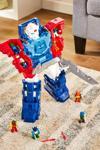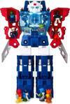 Savaş sesleri ve ışıklı gözleriyle düşmanları titreten bu 54 cm uzunluğundaki dev robot, parçaları ile farklı kombinasyonlar yapılabilen 10 adet mini robot ve dev silahları ile çocukların hayal gücünü sınırsız bir evrene taşıyor.