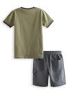 2 parça takım. Pamuklu penye kumaştan, kısa kol haki t-shirt. Üzeri baskılıdır. Şort pamuklu gabardin kumaştan üretilmiştir. 2 ön, 1 yan ve 2 arka ceplidir. Beli lastik ve kordonludur. Tüm Denokids ürünleri çocuk güvenlik kurallarına uygun üretilmekte ve tek tek iğne dedektörlerinden geçmektedir.