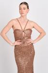 Detay: Göz alıcı detaylarıyla şıklığı zirveye taşıyan bu abiye elbise, straplez tasarımıyla zarif bir duruş sergilerken, pul payet işlemeli göğüs dekoltesi ile etkileyici bir ışıltı sunuyor. Saten askıları ve maksi boy kesimi sayesinde sofistike bir hava katarken, bedene oturan yapısı ile vücut hatlarını kusursuz bir şekilde ortaya çıkarıyor. Gizli fermuar detayı sayesinde şık ve pratik bir kullanım sağlarken, astarlı yapısı konforlu bir deneyim sunuyor. Özel davetlerden şık organizasyonlara kadar her ortamda göz kamaştıran bir seçenek;