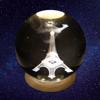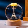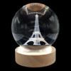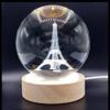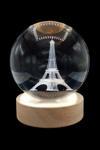 Eyfel Kristal Cam Küre 8cm Led Işıklı Usb Kablolu Ahşap Stantlı Gece Lambası