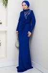 Esilanur Bersu Önü Pul Boncuk İşlemeli Tesettür Abiye Lacivert