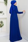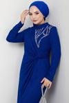 Bersu Önü Pul Boncuk İşlemeli Tesettür Abiye Lacivert - Image 1