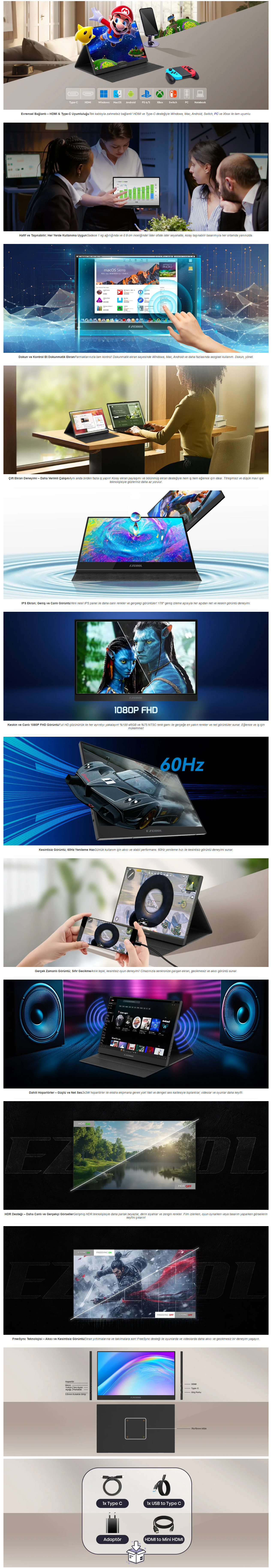 Ezcool Lite E15T 15.6 inç 60Hz Fhd Portable Taşınabilir Dokunmatik Monitör