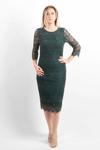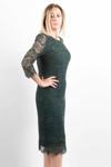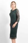 Detay: Dantel dokuma ve taş işlemeli, yuvarlak yaka, midi boy, astarlı abiye elbise;