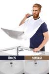 Özel vantuzlu yapısı sayesinde aynaya kolayca tutturulur; sakal, bıyık veya saç kırpıntılarını doğrudan önlüğün içinde toplar.