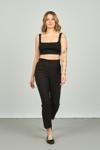 Sense Beli Kemerli Paçaları Taşlı Scuba Krep Abiye Pantolon | Pnt34185 Siyah - Image 1