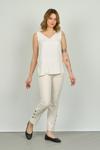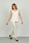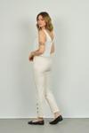 Kadın Paçaları Düğmeli Dar Kalıp Pantolon 6001 Ekru