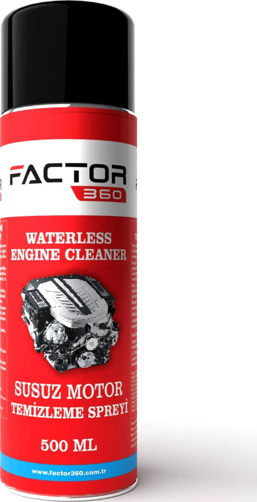 Factor360 Otomobil Araç Susuz Motor Temizleme Aerosol 500 ML, motor bölmesinde biriken yağ, gres, kurum, toz ve yol kirlerini su kullanmadan hızlı ve güvenli şekilde temizlemek için özel olarak geliştirilmiş yüksek performanslı bir motor temizleyici spreydir.