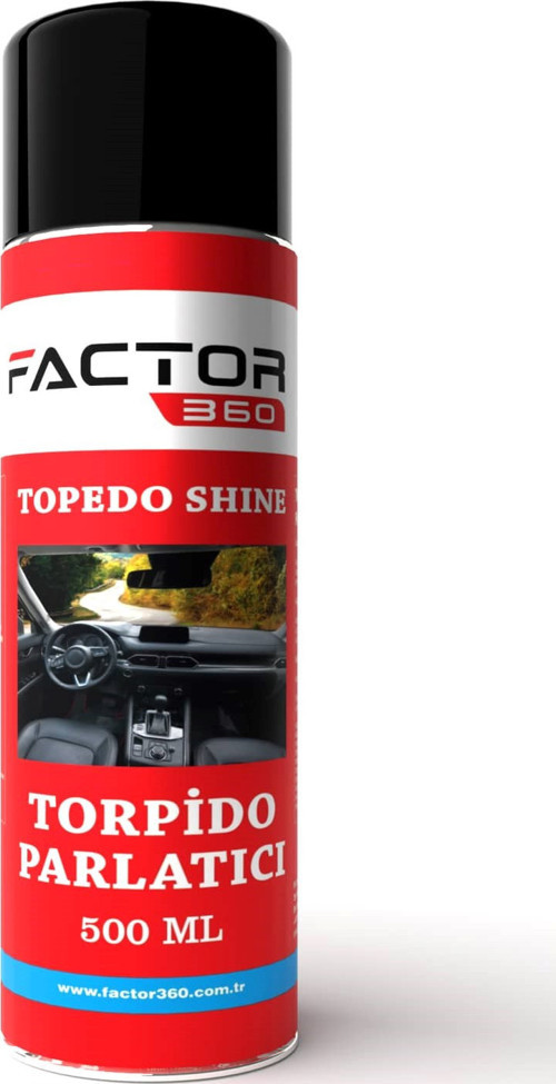 Factor360 Otomobil Araç Torpido Parlatıcı Aerosol 500 ML, matlaşmış ve soluk görünen iç plastik aksamların yenilenmiş görünüm kazanmasına katkı sağlar. Düzenli kullanımda araç içi yüzeylerin daha bakımlı ve temiz görünmesine yardımcı olur.
