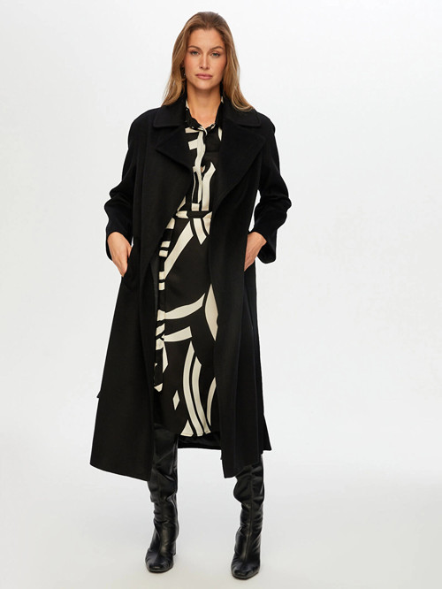Faik Sönmez Kadın Beli Kuşaklı Yünlü Siyah Manto UW26MAN003, zarif tasarımı ve güçlü duruşuyla soğuk havalarda stilinizi tamamlayan şık bir dış giyim parçasıdır. Beli kuşaklı formu, vücut hatlarını nazikçe vurgulayarak feminen bir siluet oluşturur; siyah rengi ise zamansız ve sofistike bir görünüm sunar.