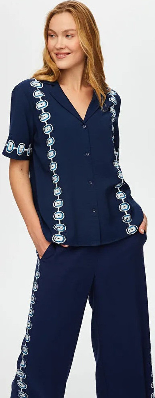 Ürün Adı : Önü Nazar Boncuğu Baskılı Kısa Kollu Viskon Gömlek S25GML034