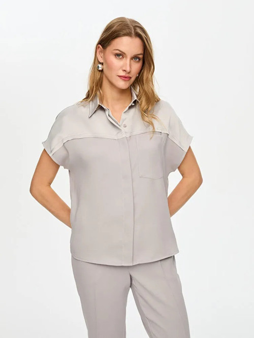Ürün Adı : Saten Garnili Krep Kısa Kol Gömlek S26GML025