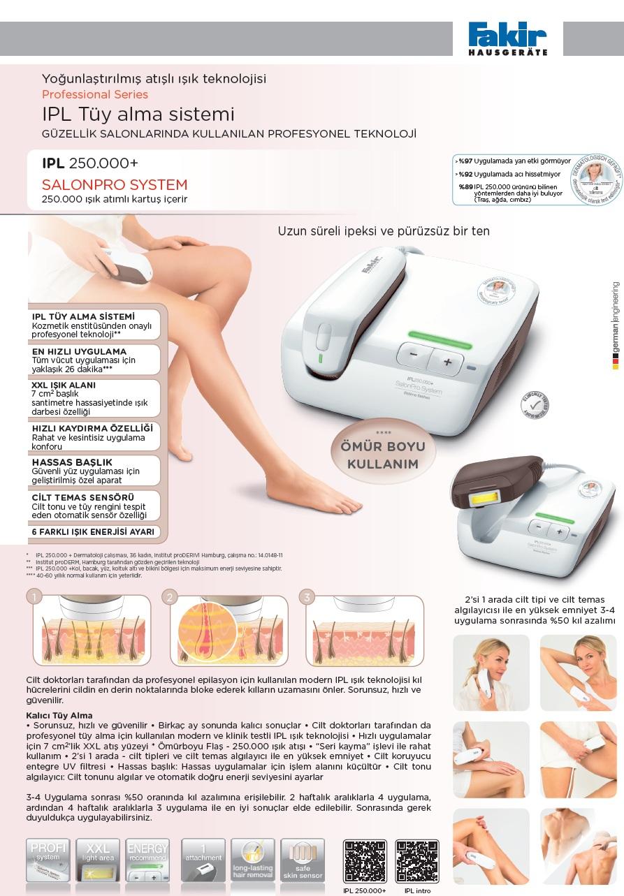 Cilt temas sensörü sayesinde istenilen doğrultuda ışık gönderimi yaparak cildinize zarar vermez ve güvenli bir şekilde kullanımı yapılır. En az 19, en fazla 58 dakika içerisinde bütün tüyleriniz yok olur.