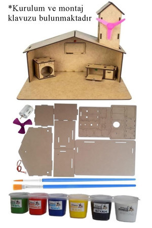 Boyanabilir Rüzgar Enerjili Ev Yapım Seti 1 Adet Dinamo Plastik Pervane Fırça Akrilik Boya Mdf Ev Deney Proje