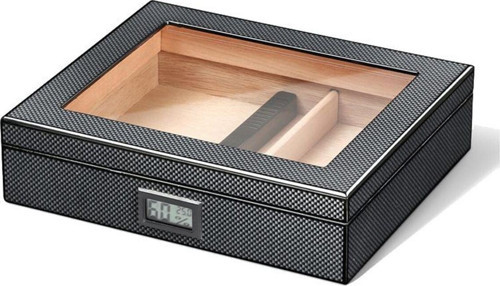 Ürün sedir ağacıdır. Üzeri Karbon fiber desenlidir. Ölçüleri : En : 26 cm. Boy : 22 cm. Yükseklik : 6,8 cm. Büyük Ring purolardan Yaklaşık 30-35 adet puro alır. Kutu içeriği : Puro nemlendiricisi kutunun içinde, dijital nem saati kutunun ön kısmındadır. Ağırlık: 1100 gr. Görseldeki purolar dahil değildir. Ürün kutusunda gönderilecektir.