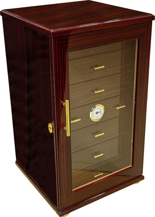 Ürün sedir ağacıdır. Lake dış kaplama. 7 çekmeceli. Ölçüleri : En : 300 mm. Boy : 300 mm. Yükseklik : 517 mm. Büyük Ring purolardan Yaklaşık 180-200 adet puro alır. Kutu içeriği : Nemlendiricisi Su koyma aparatları kutunun içindedir. Manuel Nem saati camlı ön panelin önündedir. Önü camlıdır. Ürün kutusunda gönderilecektir.