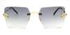 Füme renk tonlarıyla dikkat çeken bu gözlük, çerçevesiz tasarımıyla modern bir görünüm sunar.