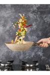 Krem rengiyle mutfağınıza şıklık katan granit wok tava, modern ve estetik bir görünüm sunar