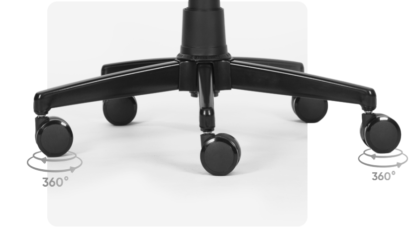 Fame kumaş oyuncu koltuğunun Poliüretan (PU) kaplamalı tekerlekleri, her türlü zeminde sessiz ve sorunsuz bir hareket sağlayarak mükemmel bir mobilite deneyimi sunar.