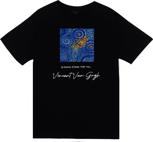 - Vincent Van Gogh'un ünlü eserlerinden ilham alınarak tasarlanan baskı, t-shirt'ünüzü sanatsal bir dokunuşla kişiselleştirir.
