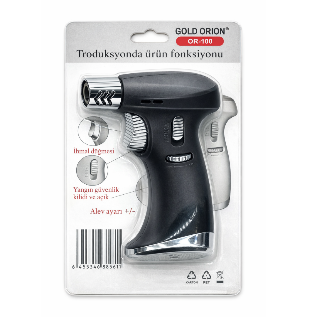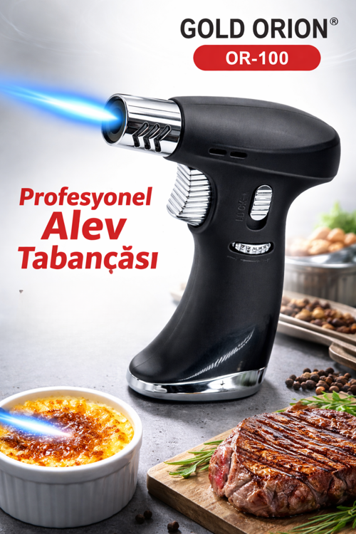 Gold Orion OR-100 Profesyonel Alev Tabancası; mutfak, hobi ve teknik uygulamalar için güçlü ve kontrollü alev sunar. Kompakt tasarımı sayesinde kolay taşınır ve rahat kullanım sağlar. Ayarlanabilir alev gücü ile farklı işlemlere uygun hassas kontrol imkânı verir. Güvenlik kilidi, istenmeyen ateşlemeleri önleyerek güvenli kullanım sağlar.