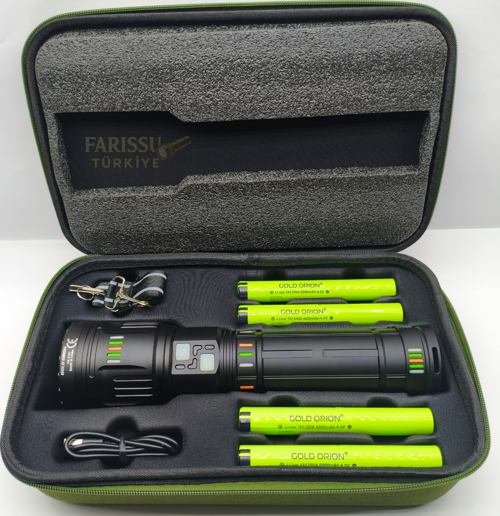 Gold Orion OR-G600 6000 Lümen Zoomlu Şarjlı El Feneri | 4×6000 mAh Pil | 3 KM Menzil | Powerbank Özellikli