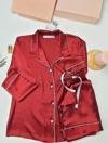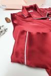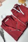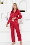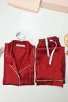 - Paket içeriği: 1 adet saten önden düğmeli uzun kollu biyeli gömlek, 1 adet saten paçaları biyeli pantolon.