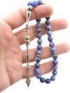 Sodalit taşı tesbihimizde gümüş kaplama malzeme kullanılmıştır.