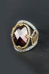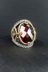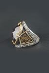 Faset Kesim kırmızı Zirkon Taşlı 925 ayar Gümüş Tuğra Detaylı Erkek Yüzük