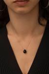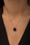 Papatya Silver Fasetli Kesim Üç Boyutlu Siyah Damla Kolye - Rose Altın Kaplama 925 Ayar Gümüş Zincir - UVPS100271