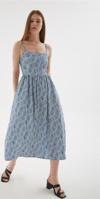 Fashion Friends Askılı Desenli Viskon Elbise Mavi