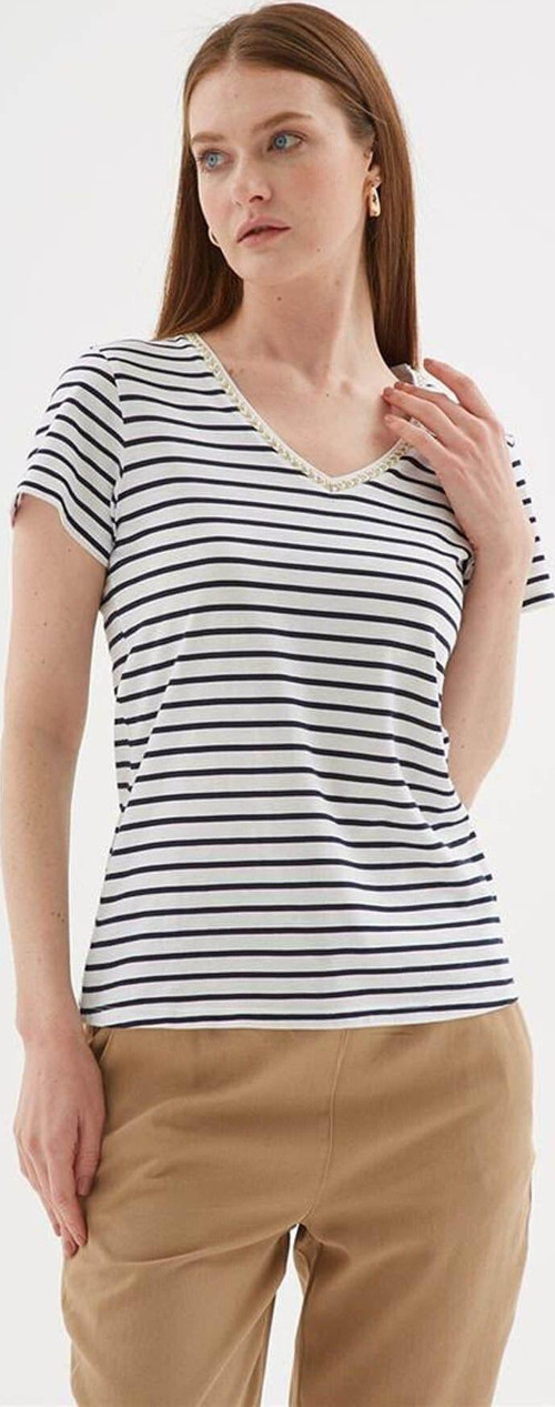 Fashion Friends Çizgili Lacivert Kadın T-Shirt 25Y0478K1