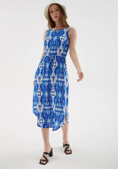 Desenli Elbise Saks- Kadın %100 Viskon, Dokuma| Fashion Friends Model Ölçüleri:Boy:1.70, Göğüs:90, Bel:68, Basen:90 Mankenin üzerindeki ürün S/28/36 bedendir.
