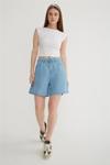 Denim Şort Mavi - Kadın Yüksek Bel, %100 Tencel, Denim| Fashion Friends